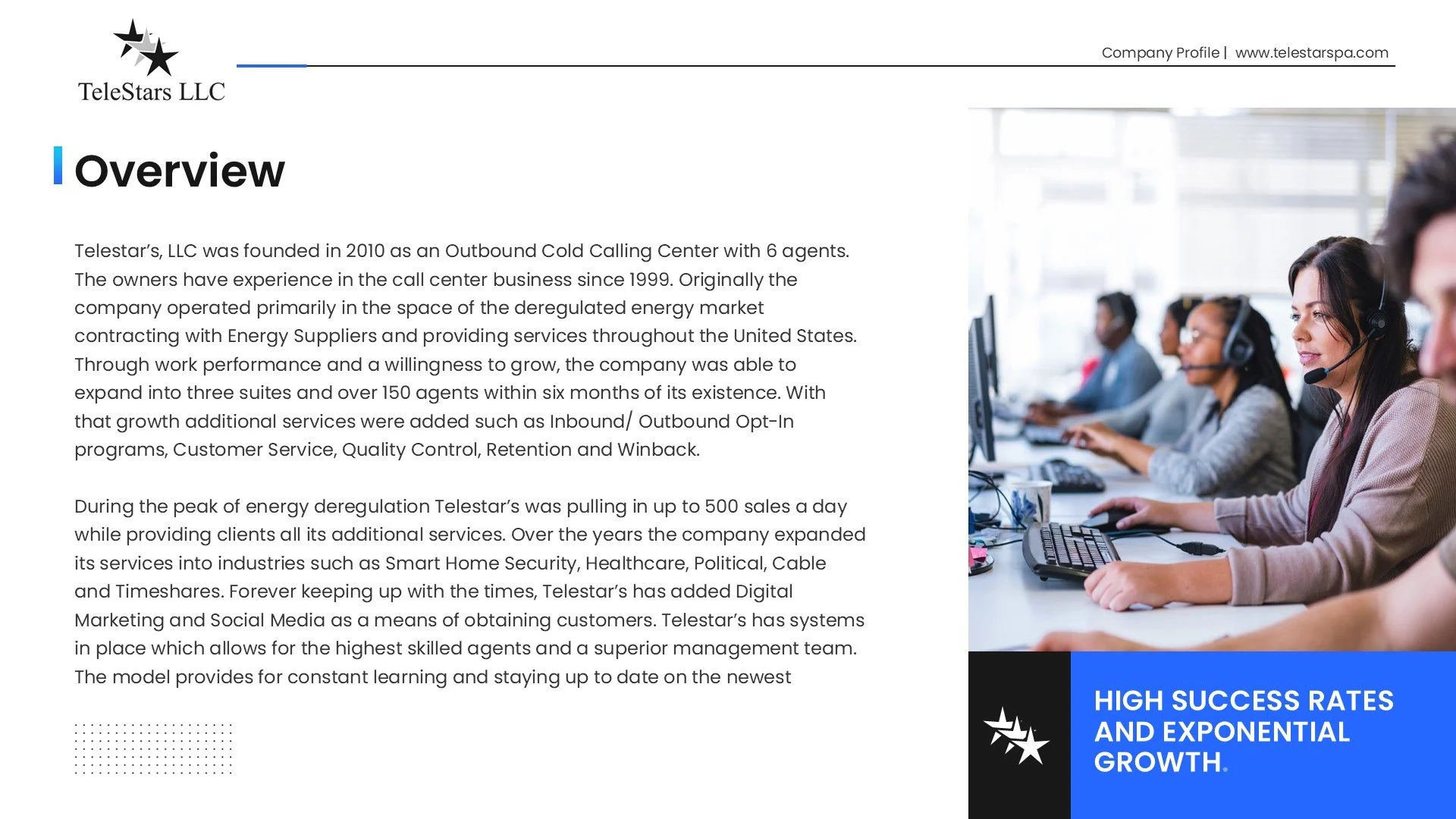 Telestars LLC has grown from and idea to an industry leader, defining a market niche.